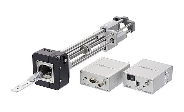 PNDetector´s BSD Slim System including Advanced BSD detector, Retractable Arm V2 and Main Amplifier MA-PN4. The system in the „Slim version“ is suited for SEMs with less than 4 inputs available.