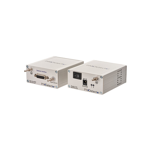 PNDetector’s 4-channel Main Amplifier together with the supply voltage box for advanced signal mixing and gain- / brightness-control supports scan rates up to 50 MHz.