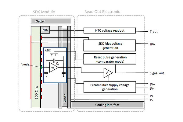 supplies the operation voltages needed to operate the XRP-A and controls the cooling of the SDD to -20°C