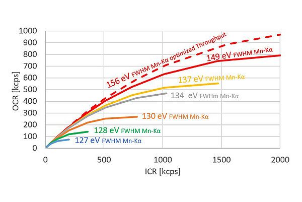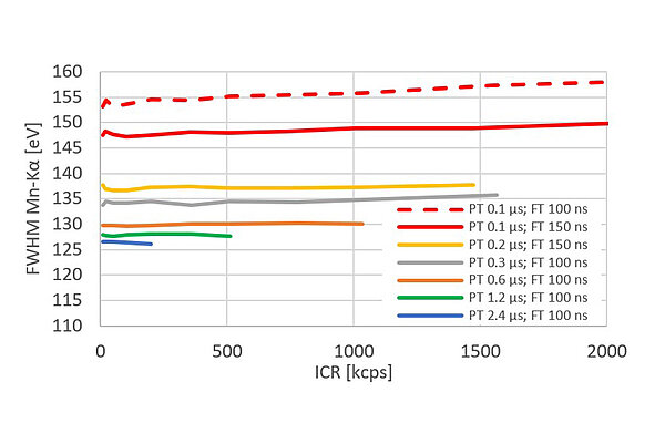 Excellent energy resolution and peak stability also at high input count rates up to > 1Mcps