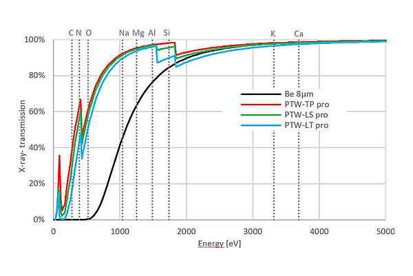 Transmission with Planar Thin Window for XRS-10 and XRS-30 - PTW LT is 'light tight', LS is 'light suppressing', TP is 'transparent'