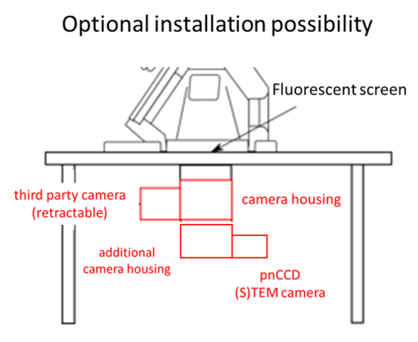 It is possible to mount the pnCCD (S)TEM camera in an additional camera housing below an already existing retractable camera.