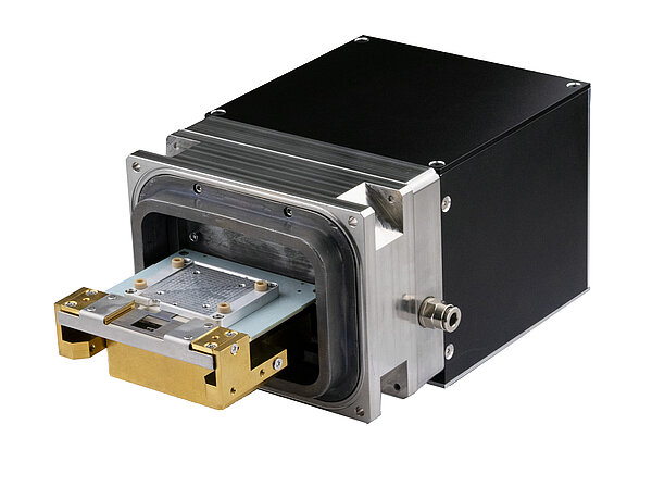 The fixed bottom mount pnCCD (S)TEM Camera is designed to be easily mounted underneath the TEM – as a single device or in an additional camera housing below an already existing retractable third-party camera. It is also compatible to TEMs with an in-column filter (Omega filter). The camera head is equipped with a radiation hard lead shielding.