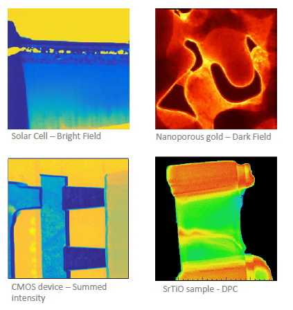 In STEM, the full 2D scattering pattern can be recorded for each probe position at high speed and high granularity providing 4D datasets of the sample. This enables sophisticated techniques like Ptychography where the amplitude and phase information can be completely recovered and used to produce high quality images of weakly scattering material. The 4D datasets further allow to precisely determine the position bright field disks or diffraction reflexes enabling the measurement of electrical and magnetic fields as well as strain.