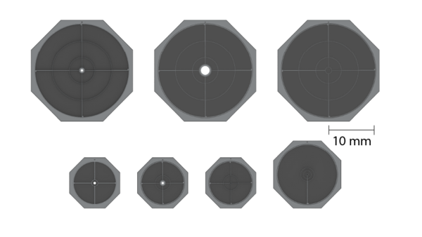All our STEM Detectors are available in this configuration, varying from 10 to 22 mm diameter, 1 to 3 rings, 4 to 13 channels, equipped with a central hole or a bright field