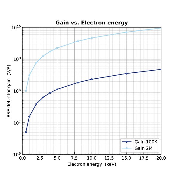 Close the gap between the fastest detection speed and the low signal operation in your SEM with PNDetector’s Switchable Gain Advanced BSD. State of the art scanning electron microscopes (SEMs) offer a broad spectrum of applications from high scan speeds to low signal operations. The Switchable Gain Advanced BSD allows you to scan your sample using this whole spectrum with the highest image qualities just by a single device. There is no need to reduce the scan speed for high gain settings or the low keV performance in high speed applications. A simple switch between this two different gain settings is enough to get all you need.