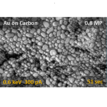 SEM image acquired with the same Switchable Gain Advanced BSD. This time, the detector is set at “high resolution mode”, corresponding to gain setting of 2×10⁶ V/A. A very high sensitivity is achieved even at primary energy beam down to 0.6 keV.